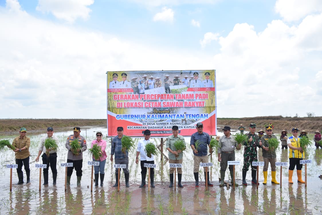Kegiatan ini diikuti oleh jajaran pemerintah daerah, kelompok tani, penyuluh pertanian, dan masyarakat setempat yang antusias mendukung program percepatan tanam sebagai bagian dari upaya menjaga ketersediaan pangan, terutama beras, di Kabupaten Kapuas.