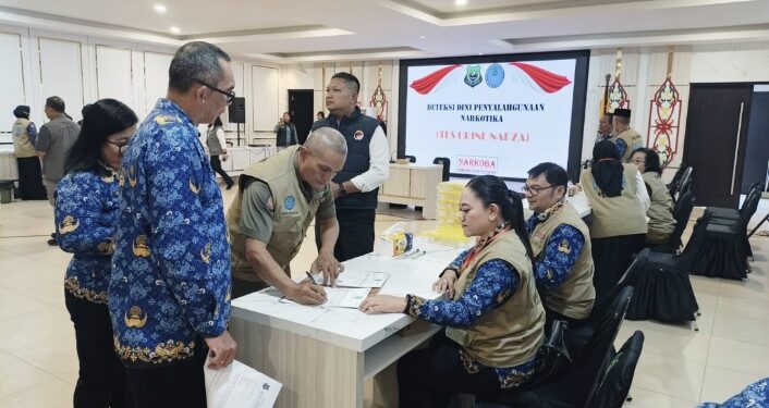 Info Kuala Kapuas – Pemerintah Kabupaten Kapuas kembali menunjukkan komitmennya dalam mencegah penyalahgunaan narkotika di lingkungan birokrasi. Melalui kegiatan deteksi dini yang digelar pada Senin, puluhan pejabat Eselon II dan III mengikuti tes narkotika sebagai bagian dari penguatan integritas aparatur sipil negara (ASN) di daerah tersebut.
