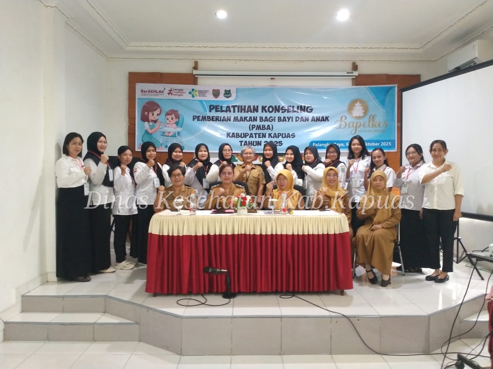 Info Kuala Kapuas – Kepala Dinas Kesehatan Kabupaten Kapuas secara resmi membuka Pelatihan Konseling Pemberian Makan Bayi dan Anak (PMBA) Tahun 2025. Kegiatan ini menjadi salah satu upaya strategis untuk memperkuat kapasitas tenaga kesehatan dalam mendukung perbaikan gizi masyarakat, khususnya bayi dan anak pada periode emas pertumbuhan.