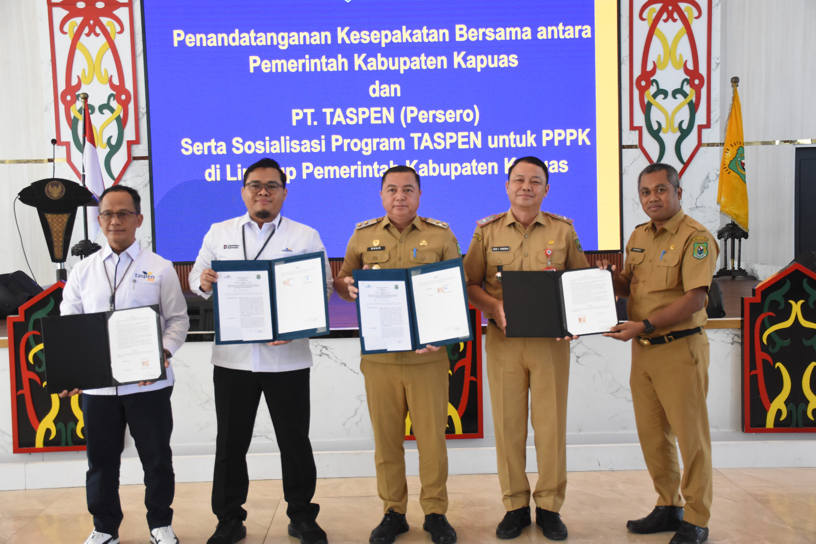 Penandatanganan berlangsung dan dihadiri jajaran pejabat Pemkab Kapuas serta perwakilan PT Taspen Palangka Raya.